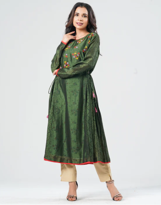 Women’s Green Embroidered Kurti